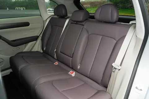 空间方面,将主驾驶位座椅调至最低且前后适合驾驶的位置,身高180侧面的体验者前排头部空间为一拳两指,后排头部空间两指,后排腿部空间还有一拳四指。后排进深充足,双脚的放置比较宽松。另外,后排还有单独的空调控制面板,营造出高级感。