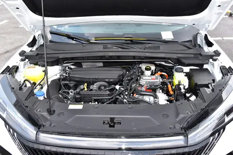 搭载了麦弗逊式独立悬挂+多连杆式独立悬挂系统,配1.5T油电混动系统,4挡DHT变速箱,电动机总功率105kW,电动机总枢纽210N.m ,电动机总马力143Ps,发动机最大马力204Ps,官方百公里加速时间6s,最高车速170km/h,NEDC综合油耗4.2L/100km,加注92号汽油。可以看出该车的动力数据来说较为充沛,同时兼顾了一定的油耗经济性。