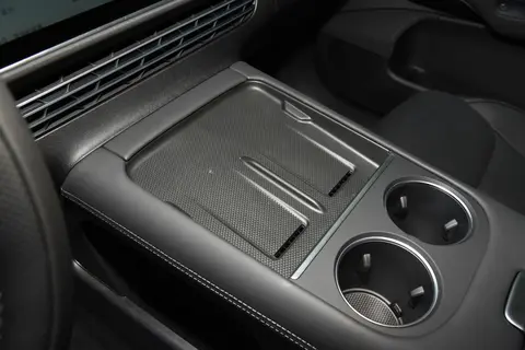 该车的内饰装潢走的是干练清爽路线,整个中央通道上没有任何物理按键布局,且储物槽也做了拉伸盖板设计,放的琐碎物品多了也不会显得杂乱。此外,小鹏G6的做工用料也颇为考究,全系方向盘均为真皮包裹,座舱两侧扶手以及中控台面等区域也都覆盖有软皮皮革,触感亲肤且有助于提升内饰档次感。