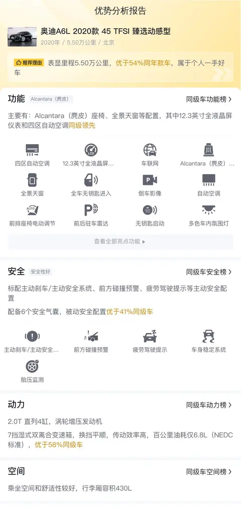 下面让我们看下文中车辆在安全、动力、空间部分相比同级车表现如何。