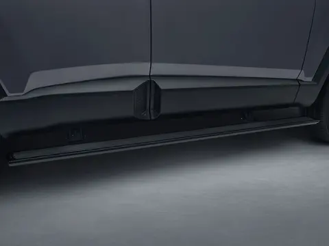 在车尾部分,标准的全尺寸背书包式备胎位于尾箱正中,左右两侧呈对称式布局,而且整体有着悬浮式的设计,尾箱中段采用了黑色边框包裹与空挡融为一体,显示出不错的设计感。左开门时的布局当然不会缺席,后保险杠部分还有着银色装饰,进一步增强了高级感,而本次新公布的官图可以看出不少细节信息,例如车顶有着4枚Led补光灯,彰显了硬派的身份,后方的行李架又非常的粗壮扎实,再度强化了这一属性,但仍不忘有全景天窗,只是打开起来可能有一些困难,不知有着怎样的处理。侧裙处黑色护板下方有着可收起的电动踏板显得更加的高级,也方便了用户的使用。