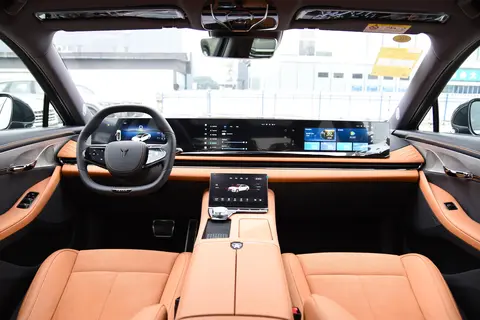 内饰也比较有看点,车内科技感浓郁,搭载了一体式连屏,中控屏及副驾驶娱乐屏12.3英寸,搭载12.3英寸的全液晶仪表,配合九英寸中控下屏,内部实体按键较少,主要功能集中于屏幕内,操作更加灵敏便捷,在功能上,有手机互联映射,车联网,语音识别,手势识别,面部识别等,增加了驾驶安全性和便利性,车内用料也比较高级,使用较多的皮质材料配合缝线拼接处理,乘坐时更为柔软舒适。