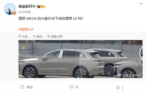 近日,网上一组理想L6(图片|配置|询价)的实车照片曝光。照片中的理想L6,身披与MEGA车型同款的大象灰特别版车漆。据理想汽车高级副总裁邹良军透露,理想L6预计将在4月与大家见面。