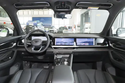 内部看来,星越L两驱长风版简洁大方,整体采用了深色调的设计,座舱内拥有大量软质材质的包裹,但在细节处拥有缝线工艺的点缀,显得比较高档。中控台上拥有三块大屏,均为12.3英寸,提升了座舱的科技感。其搭载了银河OS车载智能系统,内置了高通8155智能芯片,拥有更流畅、更强大的智能体验。比如,它支持Hicar、车联网、OTA升级、蓝牙/车载电话等功能,可进行全车的语音唤醒识别功能。它的座椅比较的宽厚,前排座椅支持加热、通风(主驾驶)等功能。
