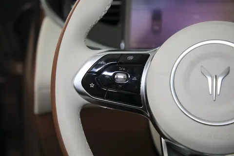 车用来开也是用来坐的。动力和底盘肯定也是关键。新岚图FREE这款车用前后双电机配了一个1.5T的四缸增程器。电机马力来到了490Ps,扭矩去到了720N·m。官方数字,4.8秒可以破百。这么庞大的一个车身,不用5秒就可以飙起来。动力储备是燃油车所不能企及的。日常开起来也挺不错的。标准舒适模式下,动力调教上偏平稳。不是那种特别敏感的响应,也没有慢慢悠悠的感觉。提速挺轻快的,开起来并不会有大车的笨重感。方向盘并不重,年轻人开也没有问题。
