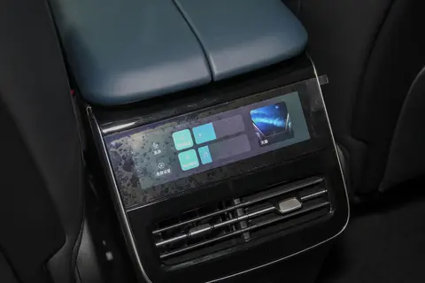车内采用了环抱式的座舱,整体简约而不失豪华气息。中控台配有可升降的三联屏,三块屏幕的尺寸均为12.3英寸,分辨率达到1920x720,集成了多种智能联网功能,提升了车内的科技感。座椅采用了皮/翻毛皮材质,前排均支持电动调节、加热、通风和按摩功能。配有双色搭配的平底式方向盘,为皮质包裹,支持多功能控制和4向调节,采用了怀挡的设计,中央扶手箱配有50W无线充电区域。此外,车内还配有10颗来自丹拿的扬声器、K歌功能和64色氛围灯,能获得较好的娱乐体验。