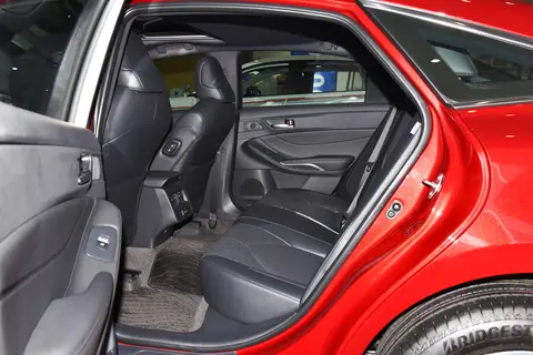 轴距达到2870mm,车内采用5座布局。我的身高为175m,入座后排头部余1拳2指,腿部还剩余2拳多的空间。座椅采用了真皮+仿皮的材质,前排配电动调节功能,还加入了老板键,调节副驾驶座椅更加轻松。车内还配有双区空调、后排出风口和车载空气净化器等装置,提升了车内乘客的舒适度。