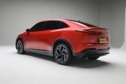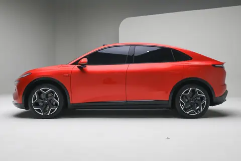 车身侧面,新车采用轿跑SUV的造型设计,运动感十足。该车没有采用悬浮式车顶造型,而是对车窗饰条进行了熏黑处理。此外,车身侧面还配备了隐藏式门把手、无框门、五星轮毂等设计元素。