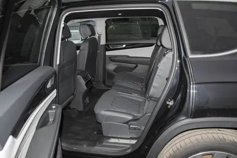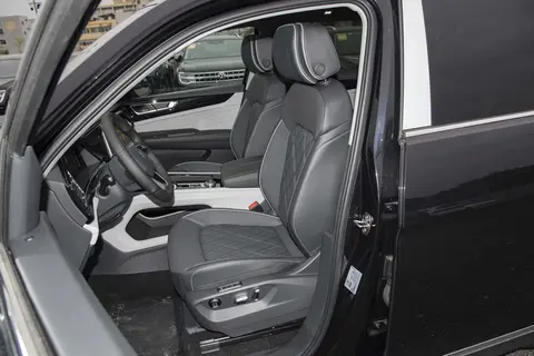 车辆全系标配7座,从尺寸上来看,要大于汉兰达,长宽高在5052×1989×1773毫米,车身轴距在2980毫米。车辆没有标配脚踏板,后期可以自己去选装,轮毂是多幅式设计,带有哑光的处理,尺寸在21英寸,上方是安排了车顶行李架,毕竟如果三排全部坐满,后备厢的空间是相对一般,只有286L容量。尾部方面,造型是以上窄下宽为主,贯穿式尾灯配合亮银色的装饰条,不会觉得太土,和前脸一样,都是有专属V6标识,能够第一眼就看出是高配车型。