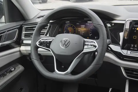 在空间方面,我们看到途昂整体采用的是家族式的设计,中控台依然为对称式T形的设计,中控台上设计有悬浮式的屏幕,尺寸达到12英寸。在互联方面,它支持Hicar、CarLife、CarPlay的手机互联,功能比较丰富。另外,它还支持OTA的远程升级功能。在车内还可以进行语音识别的控制,比较方便。途昂的方向盘采用了圆形三辐的设计方式,方向盘为真皮材质的包覆,握感比较舒适。除此之外,它还拥有全景天窗、自动三区空调、电动尾门等配置。