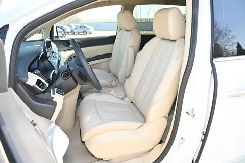 进入车内,内饰部分的整体布局十分规整大气,中控台区域采用了大面积的软性材质进行包裹覆盖,而且缝线工艺也处理得相当到位,而且车内还加入了一块银色拉丝面板来进行点缀,营造出不错的豪华氛围。中间搭载了一块12寸的悬浮式中控屏幕,内置了车身稳定系统、刹车辅助、GPS导航系统、导航路况信息展示、道路救援服务、蓝牙/车载电话等功能。下方则是一块8英寸的非全液晶仪表盘,不过显示的信息还是非常全面的。三幅式的多功能方向盘采用真皮材质包裹,手感细腻的同时还能带来不错的握持感。此外,新车还支持无钥匙启动、远程启动、自动驻车、上坡辅助、全景摄像头、手机App远程控制、无钥匙进入等功能。