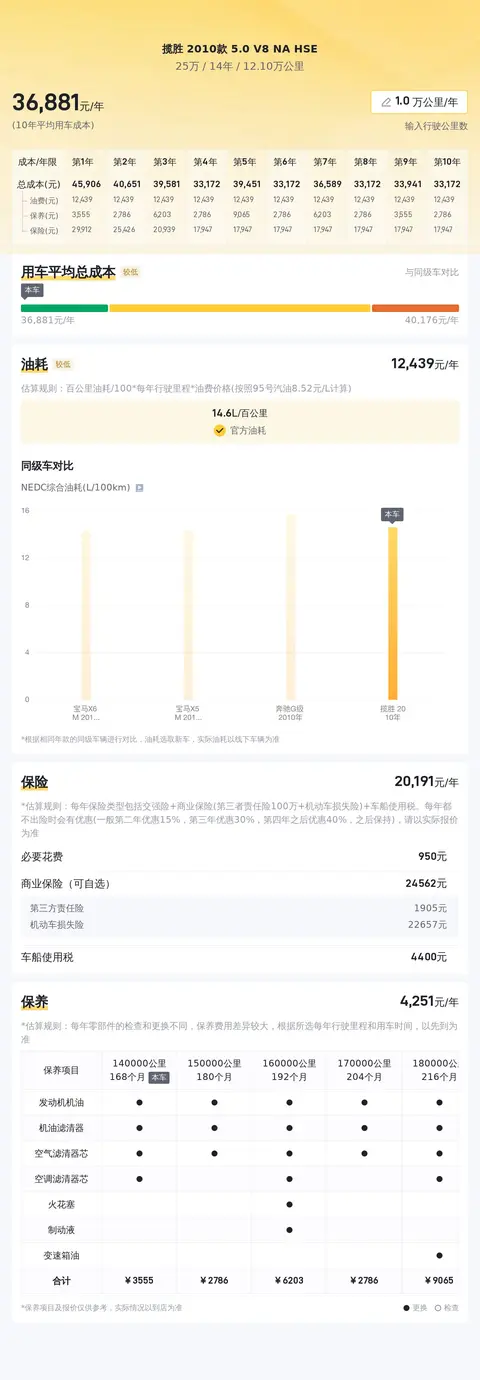据估算,该车的年均综合用车成本约为3.7万元。然而,这个费用会因个人驾驶习惯、使用强度等因素有所不同。