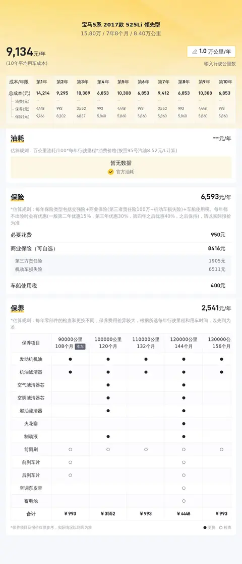 关于这款车的用车成本,我们对其进行了统计,其一年用车成本为1.1万左右,两年用车成本为2.2万左右,三年用车成本为3.3万左右,这只是大概估算,具体金额还是得看车辆的实际使用情况。