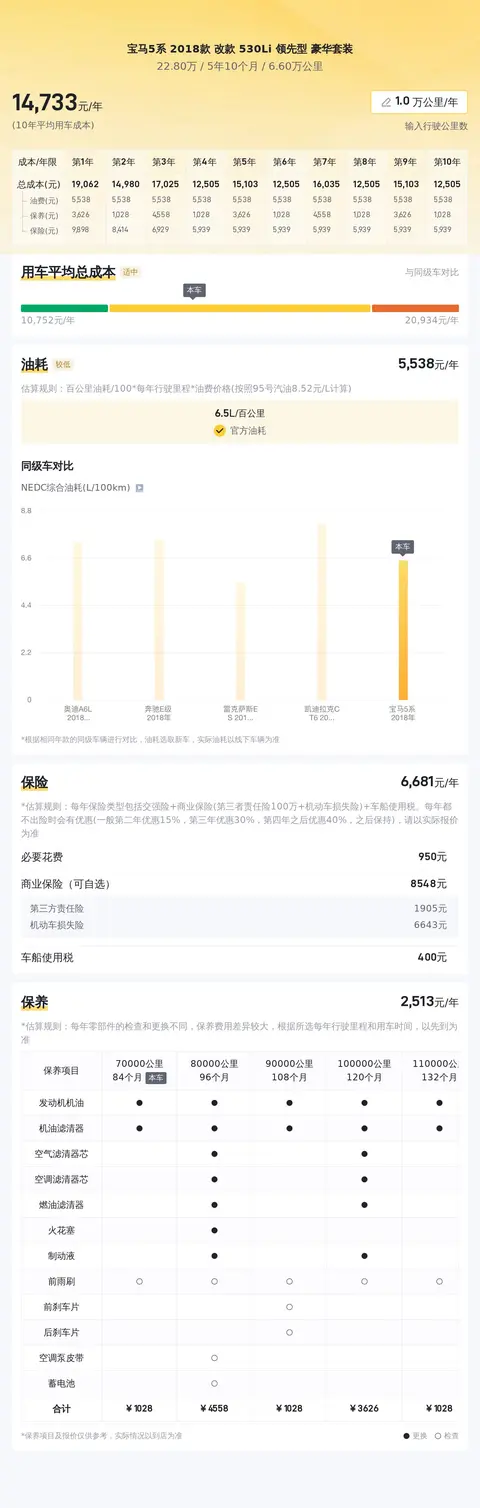 除了以上的配置,这款宝马5系还提供了多项实用的便利功能。其中,主驾座椅记忆功能尤为值得一提,它能够自动调整到预先设置好的坐姿,极大地方便了经常有多人使用的车辆。此外,单碟CD配合上USB/Type-C等多种音频接口,让您随时享受音乐盛宴。至于自动气候控制,它确保车内始终处于宜人的温度。令人惊喜的是,尽管这是辆二手车,但其年均综合用车成本仍保持在约1.5万元左右,显示出不错的经济效率。