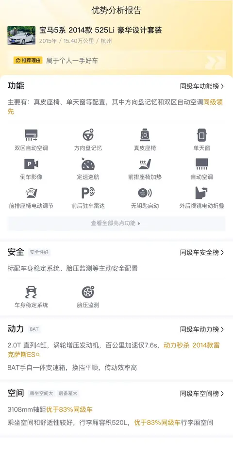 综上所述,这辆二手宝马5系在配置和动力上都有不错的表现。当然,如果您想进一步了解这款车在同级竞品中的表现,下面的对比图或许能给您提供一些有用的信息。