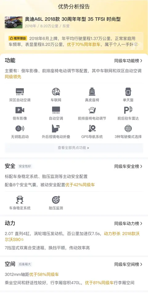 今天我们将为您带来一款二手奥迪 A6L,这是 2018 款奥迪 A6L 30 周年版 35 TFSI 时尚型,黑色外观,2018 年 06 月首次上牌,至今跑了 8.2 万公里,该车 0 过户,属于国五排放标准。新车指导价为 40.68 万,现在的二手报价为 17.49 万。接下来就让我们一起看看这辆车的具体表现吧!