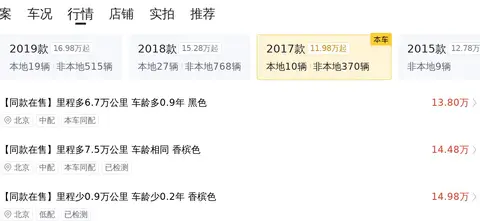 目前这款车的二手车行情大致在15.87万至19.58万之间。影响二手车售价的因素很多,包括使用年限、行驶里程和车辆保养状态等,因此实际成交价可能会有所不同。