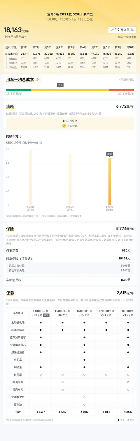 谈及用车成本,根据当前车龄及使用强度,我们预估这辆车的年均用车开销约为1.6万元左右,三年下来用车花费大约在5万元左右。不过,这些都只能作为参考,因为实际花销会依据车主的使用方式与维护状况产生显著差异。