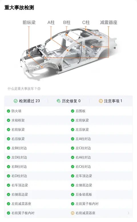 在篇开头我们提到了关于车况的部分,那么下面我们就来详细说一下。在车况部分,除了外观、内饰功能的检测,更多买家关注的是这辆车是否为“三非”车辆,三非就是指非重大事故、非火烧、非水泡。因为事故车、泡水车、火烧车都存在较大的安全隐患。不过您放心,这辆车已经通过了事故检测、火烧检测和泡水检测,可以确定它非重大事故车、非火烧车、非泡水车。