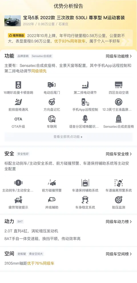 欢迎各位车迷朋友,今天我们将为您带来一款深受消费者喜爱的中大型轿车——二手宝马5系(图片|配置|询价)。这款车型以其优雅的设计、豪华的内饰以及卓越的性能而闻名,在市场上有着不俗的表现。接下来,我们将详细讲述一辆二手宝马5系,并为您提供全面的信息。该车的具体版本为2022款的530Li尊享型M运动套装,表显里程仅为0.96万公里,上牌日期为2022年10月,至今仍处于良好的状态。新车指导价为49.99万元,如今二手车报价仅需36.80万元,相比新车价格便宜了13.49万元。该车目前位于石家庄,上牌地也是石家庄,值得注意的是,车有0过户,保持原始状态。