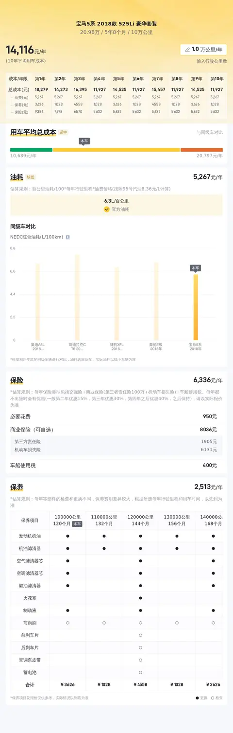接下来,让我们看看这款车的使用成本。根据估算,这辆车的年均综合用车成本大约在1.4万元左右。当然,具体的费用会根据您的使用方式和保养状况有所不同。