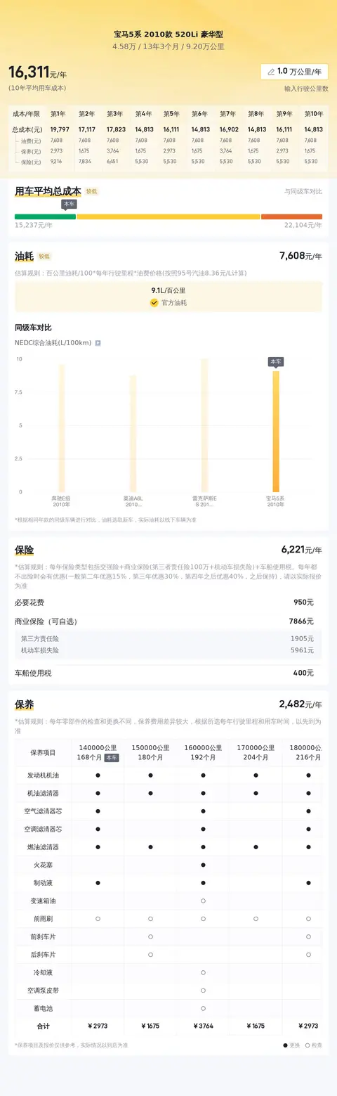 除了关注市场价格,了解一款车的真实用车成本也是必不可少的。根据估算,这辆车年均综合用车成本大概在每年1.6万元左右。当然,具体的花费金额还会因个人驾驶习惯和使用强度有所不同。
