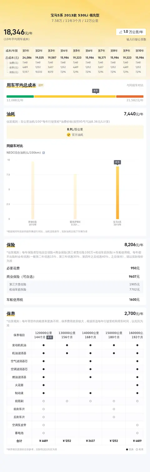 就用车负担而言,我们预测这辆二手车的年均开销约1.8万元,涵盖了保养、加油和维修等主要费用。当然,具体的花费会因车主的驾驶习惯和日常使用环境而有所不同。