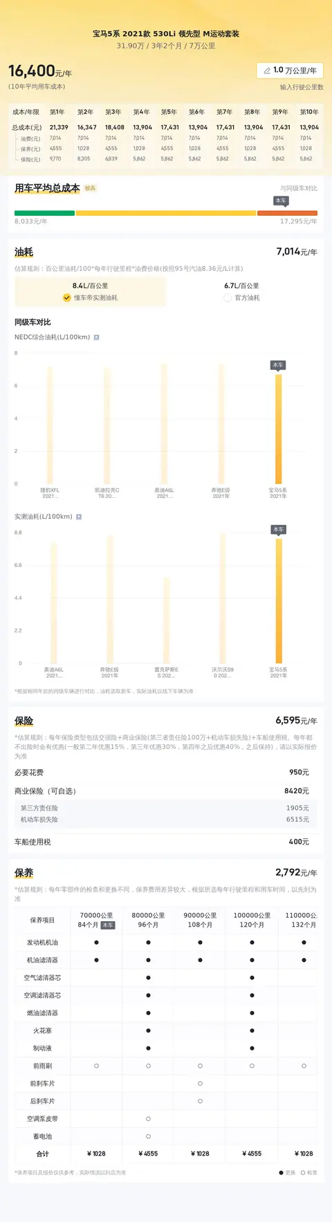 对于年度综合用车成本,根据我们的估算,这款车大约会花费每年1.6万元左右。但需要注意的是,这个费用会根据车辆的实际使用情况和维护状况有所浮动。