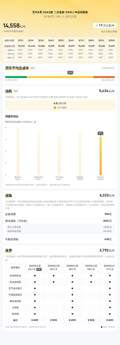 而在用车成本方面,根据我们的估算,这辆车的年均综合用车成本大约为1.5万元左右。不过,这个金额会根据每个车主的实际使用情况而有所差异。