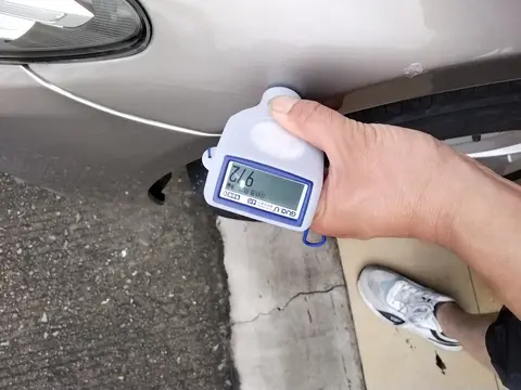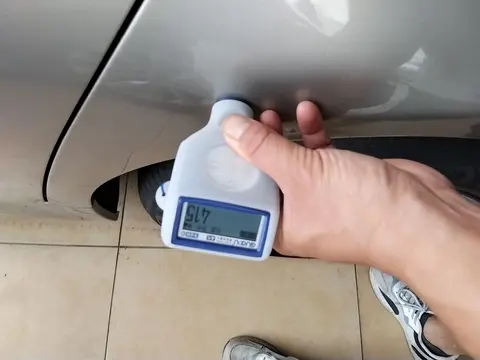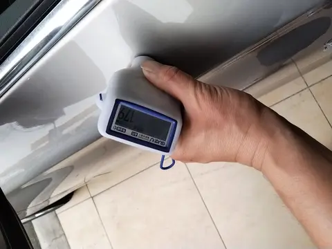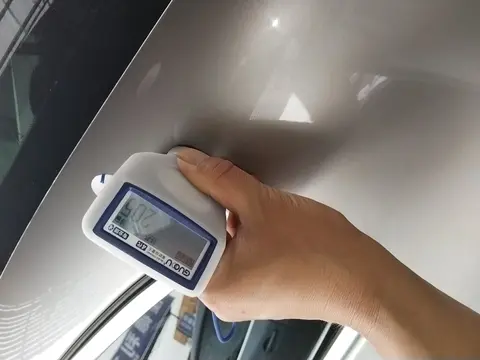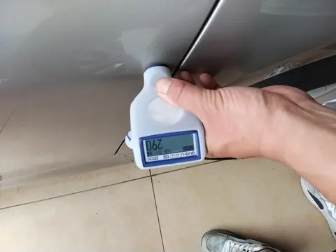 当然了,虽然这辆车通过了以上的检测,但是在外观部分,还是有一些小瑕疵的。在外观检测中,一共发现有9处问题。具体是左前门、左后门、右前翼子板、左C柱外侧进行了喷漆修复;右前轮毂、左后轮毂、右后轮毂存在剐蹭痕迹;左前翼子板、左后翼子板进行了钣金修复。下面我们将为您展示一些瑕疵图。