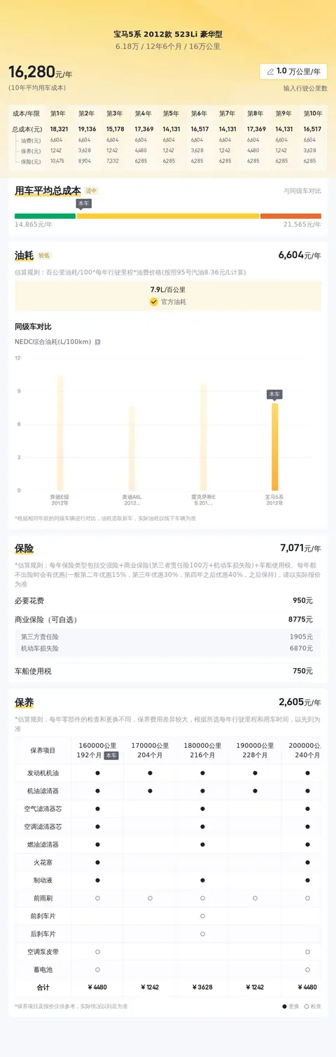 关于用车成本,我们预计这辆车的年均综合用车成本约1.6万元左右。不过这里要说明的是,这项开销可能会依据具体使用情况而有所变动。