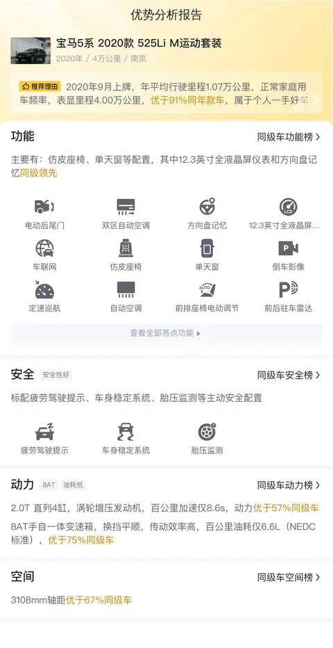 先来看基础信息,这一代宝马5系的具体版本是2020款 525Li M运动套装,定位中大型轿车,2020年9月上牌,至今跑了4万公里,江苏南京牌照,没有过户记录。新车指导价42.69万,如今卖家报价24.88万,比新车省17.81万。