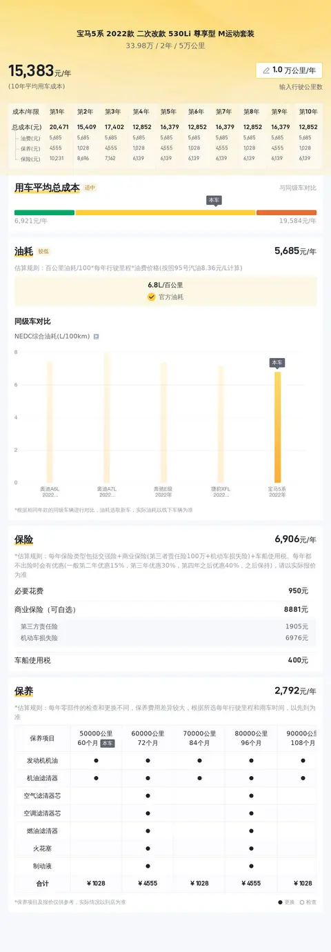 在用车成本方面,根据估算,这辆车的年均综合用车成本约1.5万元左右,当然具体的花费还是要根据车辆的实际使用情况而定的。