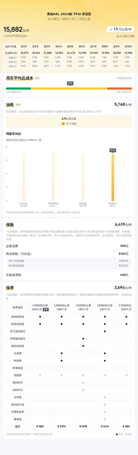 关于用车成本方面,根据我们的估算,这辆车的年均综合用车成本约为1.6万元左右。但需要注意的是,这个费用会随着车辆的实际使用情况而有所波动。