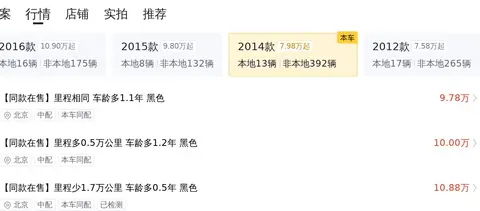 在全国范围内,我们找到了与本车相似的销售情况,下面所展示的图便是这些同款车型的价格比较。
