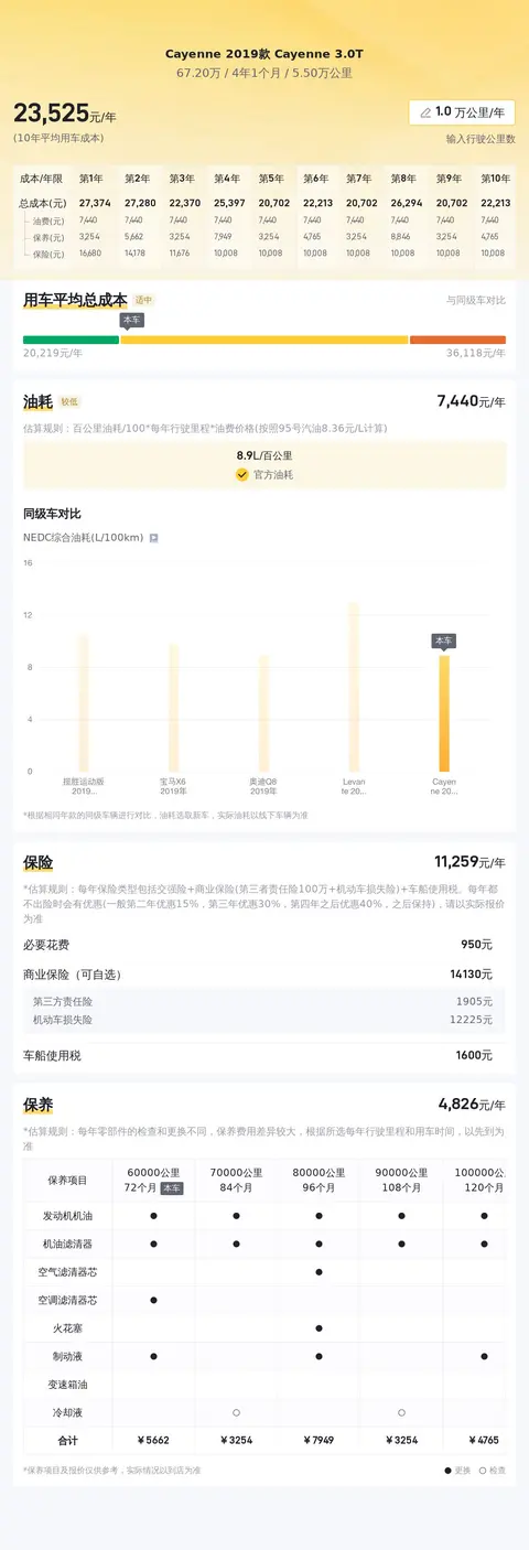 关于用车成本方面,在日常使用过程中难免会发生一些额外费用。据估算,这辆车的年均综合用车成本约2.4万元左右。当然,这一数字也会根据车主的实际使用情况而有所浮动。