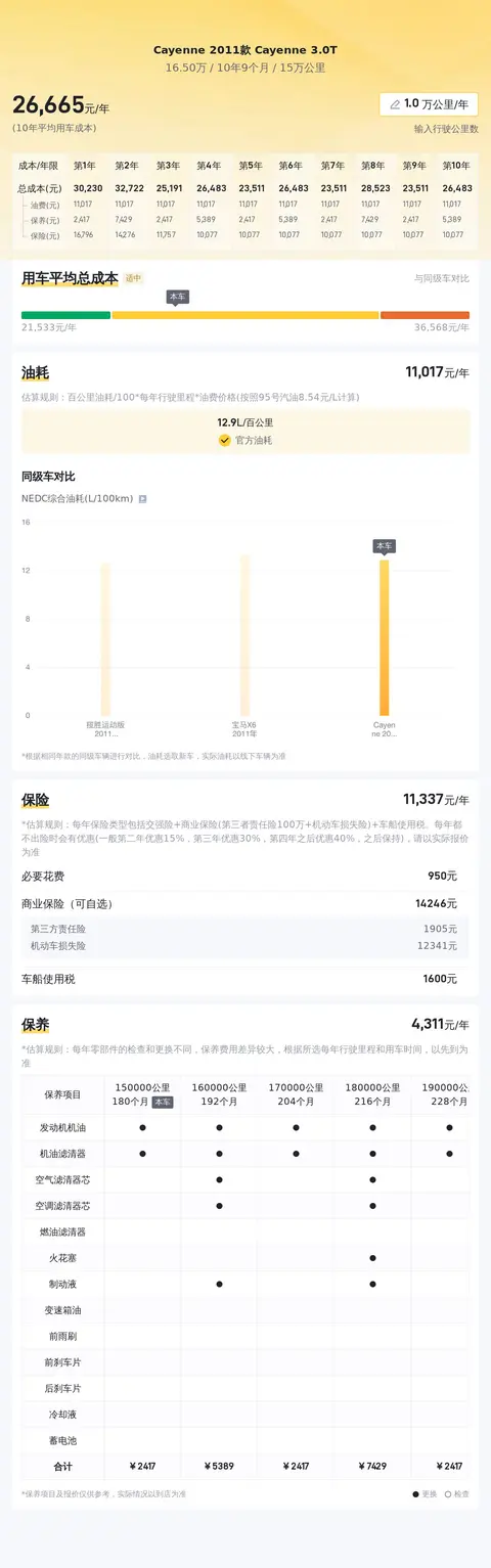 关于这款车的用车成本,根据我们的估算,这辆车年均综合用车成本大概在每年2.7万元左右,当然具体的金额还是与车辆的实际使用强度等因素有着直接关系。