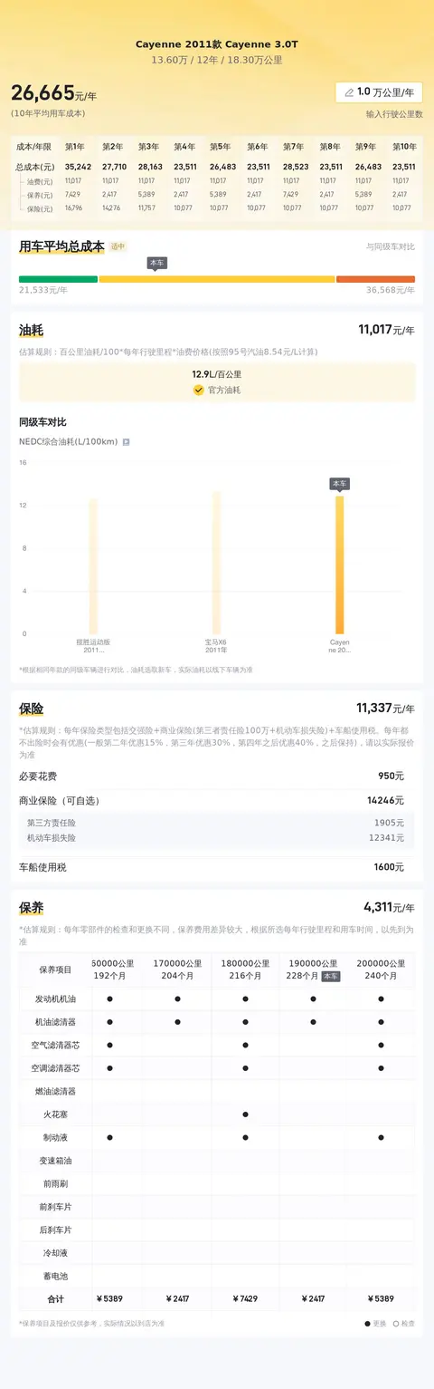 就日常开销而言,根据估算,这辆车的年均综合用车成本大约在2.7万元左右。这个金额会根据车辆的实际使用状况产生浮动。接下来,我们一起看下关于这款车在市场使用过程中的花费情况。