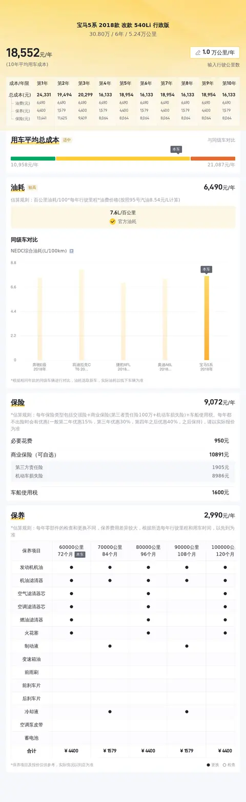 关于用车成本,根据估算,这辆车年均综合用车成本大概在每年1.9万元左右。这里需要注意的是,这项费用会根据车辆的实际使用情况而有所变化。