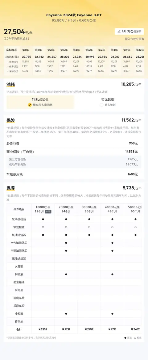 当然,在买车这件事儿上,不仅要考虑购车预算,还要计算日后的使用和维护费用。据我们估算,这辆车的年均综合用车成本约为2.8万元左右。当然,具体的花费会依据车主的使用情况有所不同。