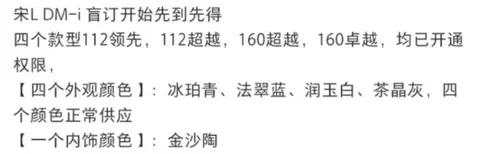 从网上透露出的消息看(以官方最终信息为准),宋L DM-i会提供4款外观配色和1款内饰配色选择,售价区间或在15万-18万元。