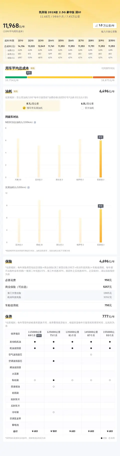 用车成本方面,根据估算,这辆车的年均综合用车成本约为1.2万元左右,当然具体的实际费用开销还是要根据车辆的实际使用情况而定。
