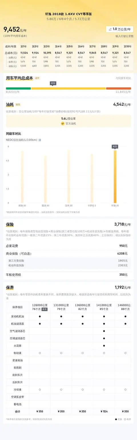 用车成本方面,根据估算,这辆车年均综合用车成本大概在每年0.9万元左右。当然,这也与车主的实际使用情况有关。接下来,让我们通过与同级车的对比,来进一步了解一下这款车的产品实力。