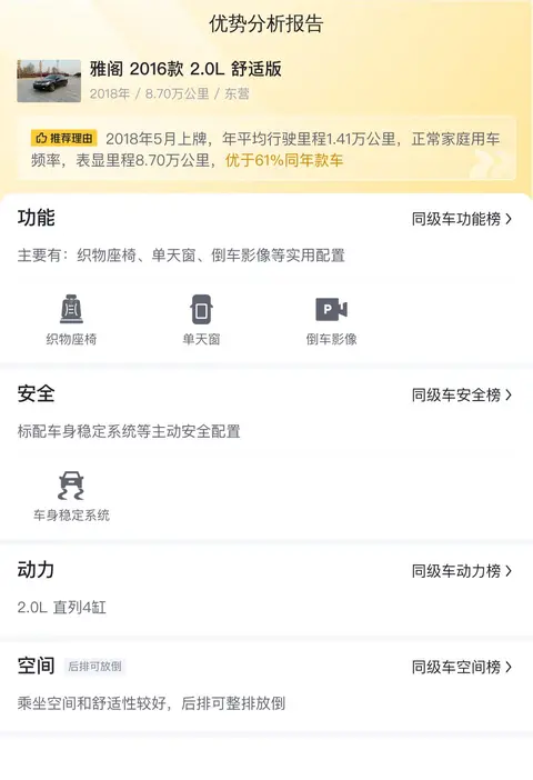 综上所述的用车成本、市场行情、优势分析、同款比价等数据仅供参考,车况信息需要线下结合车辆实际情况进行综合参考,祝您购车愉快!