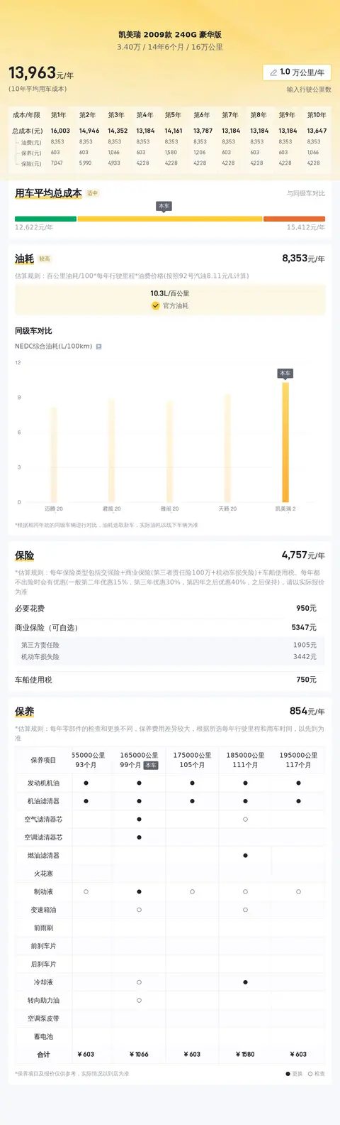 综上所述的用车成本、市场行情、优势分析、同款比价等数据仅供参考,车况信息需要线下结合车辆实际情况进行综合参考。如果您对这款凯美瑞 2009款 240G 豪华版感兴趣,欢迎随时预约看车。