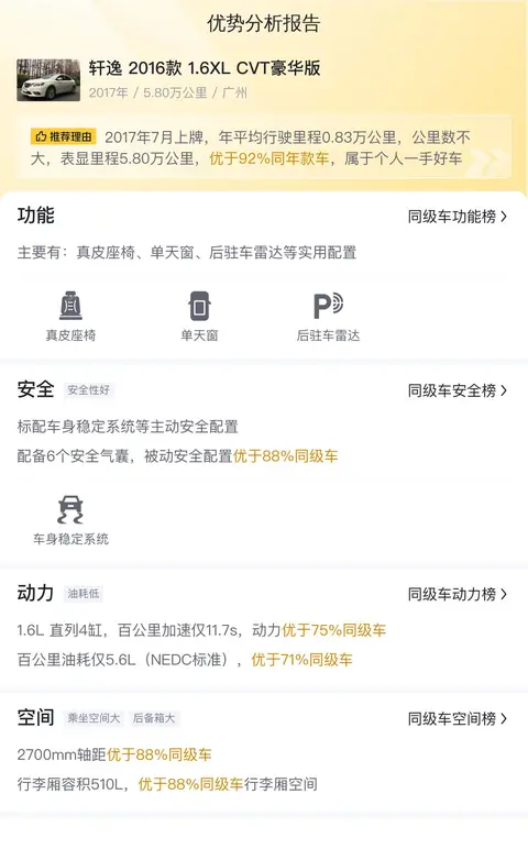 本文所述的用车成本、市场行情、优势分析、同款比价等数据仅供参考,车况信息需要线下结合车辆实际情况进行综合参考。