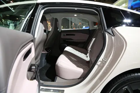 内饰以浅色系为主,大面积覆盖软性皮质材料,坐进前排空间具有不错的包裹感。台面中部搭载了一块14.6英寸的悬浮式中控屏幕,屏幕的分辨率为2.5K。左侧带有一块摆台式的长条仪表盘和圆形多功能方向盘。前排中岛布局平整,带有手机无线快充面板,扶手箱为对开门设计。座椅内部填充厚实的发泡材料,表面则是真皮材质包裹,带有菱形压纹工艺。搭载高通骁龙8155P车载智能芯片和ADiGO车载智能系统,支持连续性语音识别、可见即可说等功能。