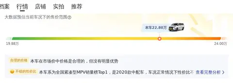 别克GL8 2020款 ES陆尊 653T 舒适型的市场行情价格约在19.88万至24.00万之间,而本车报价22.80万,价格比较合理。另外,其10年平均用车成本约为14877元/年,而同级车的最低10年平均用车成本为13189元/年,最高10年平均用车成本为17525元/年,所以它的用车成本也比较合理。