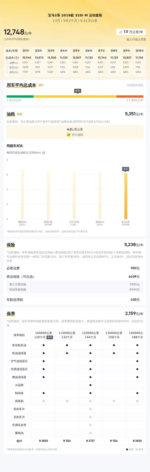 这辆宝马3系的具体版本是——宝马3系 2019款 320i M 运动套装,表显里程9.41万公里,上牌日期2019年4月,上牌地和车源地均为南通,新车指导价30.98万,二手车报价13万,目前0过户。