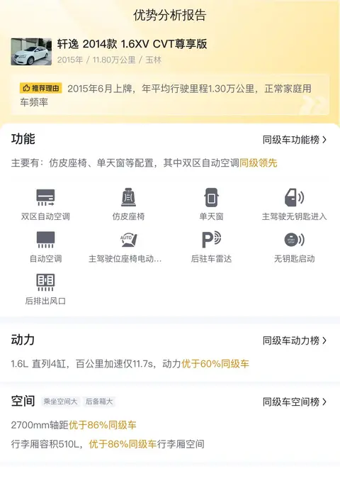 文中用车成本、市场行情、优势分析、同款比价等数据仅供参考,车况信息需要线下结合车辆实际情况进行综合参考。